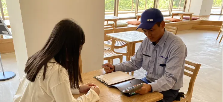受付時の内容を確認します。回収物の追加がなければ、事前にお伝えしている金額になります。別途追加があれば現場でも対応が可能です。